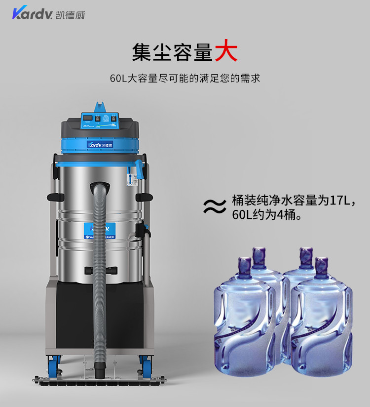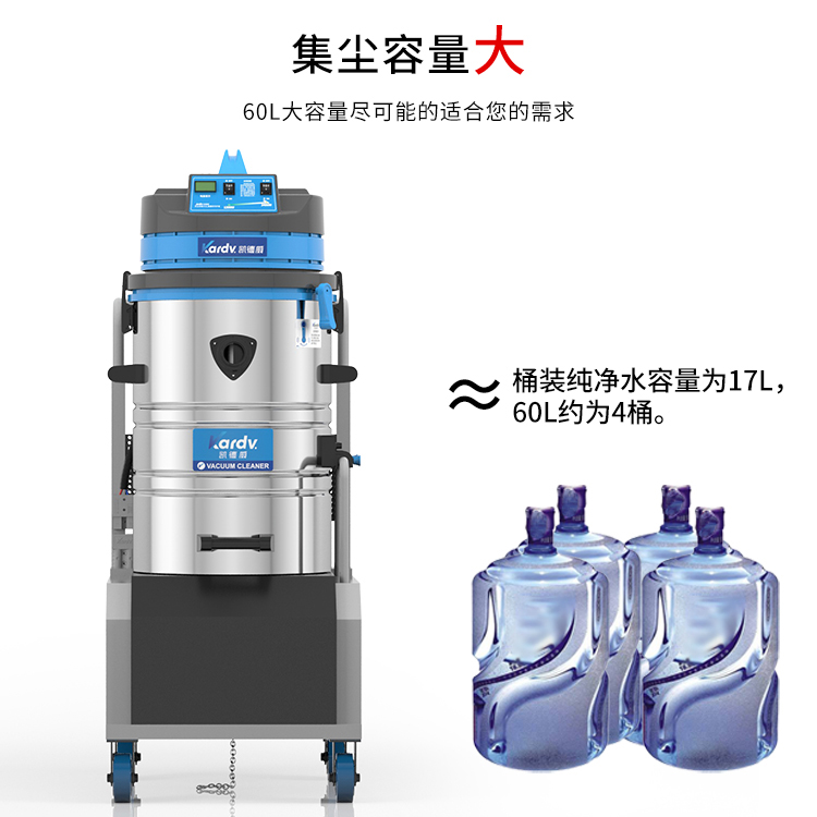 DL-2060D凱德威電瓶式吸塵器是我司的一款充電式工業吸塵器,摒棄了常規拖線式吸塵器使用范圍的局限性,此款吸塵器利用蓄電池做為電源啟動。適用于紡織、醫藥、電子、食品加工、機械制造、造紙、陶瓷、等需要大面積清理而不想受限于電源線限制的場所。具體請咨詢銷售人員。