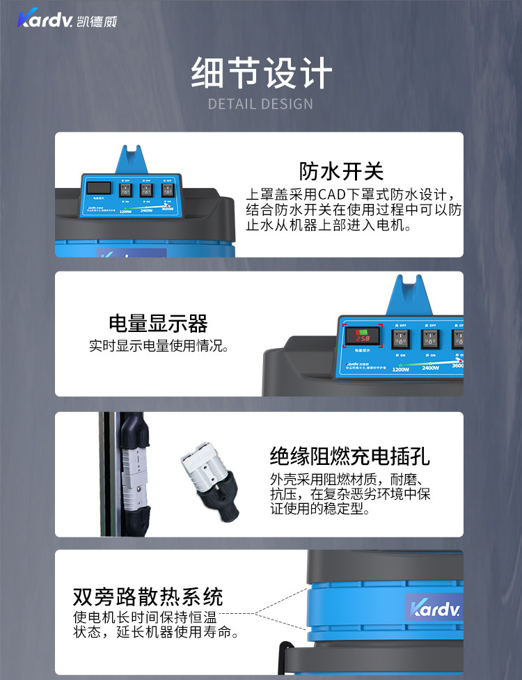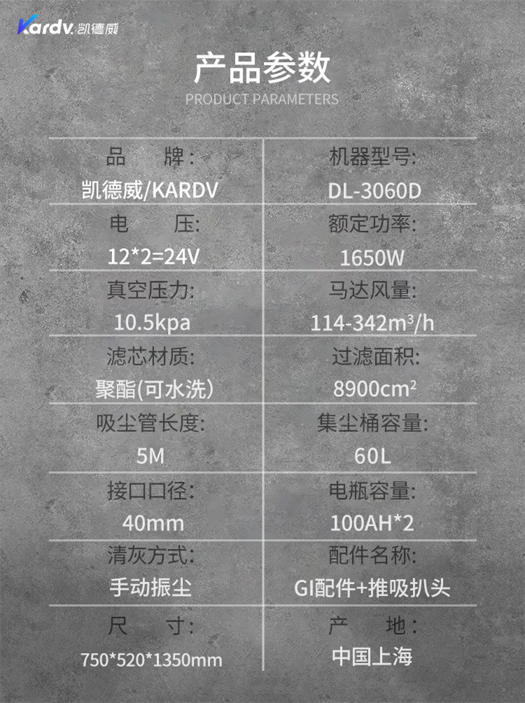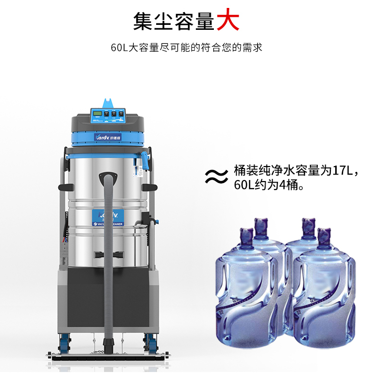 DL-3060D凱德威電瓶式吸塵器是我司的一款充電式工業吸塵器,摒棄了常規拖線式吸塵器使用范圍的局限性。此款吸塵器利用鋰電池組做為電力源,不需外接電源,操作簡單方便。機器除常規手持式吸塵外,裝置有60cm寬可推吸扒頭,可以邊推邊吸