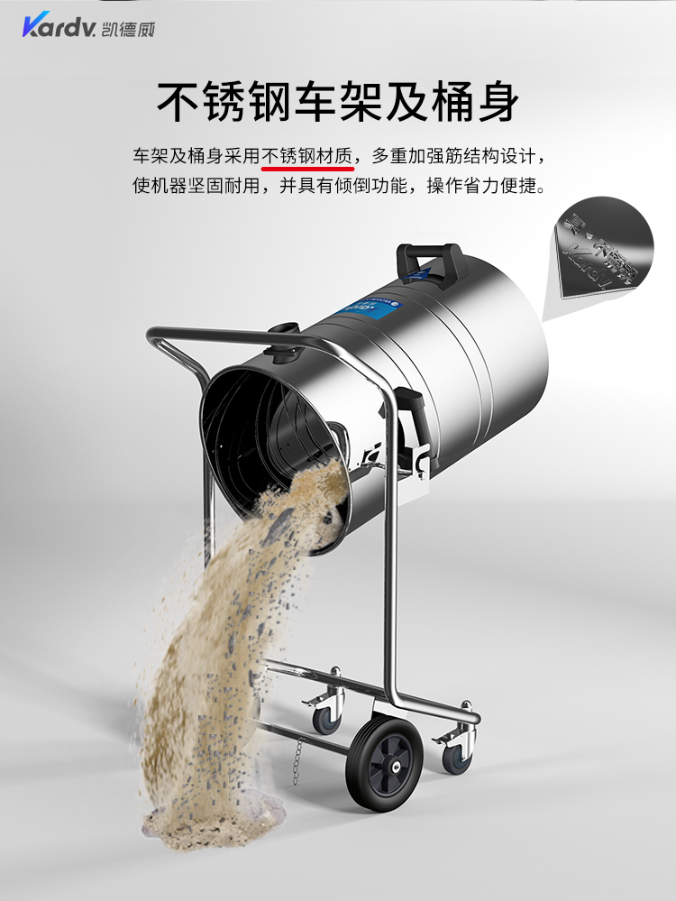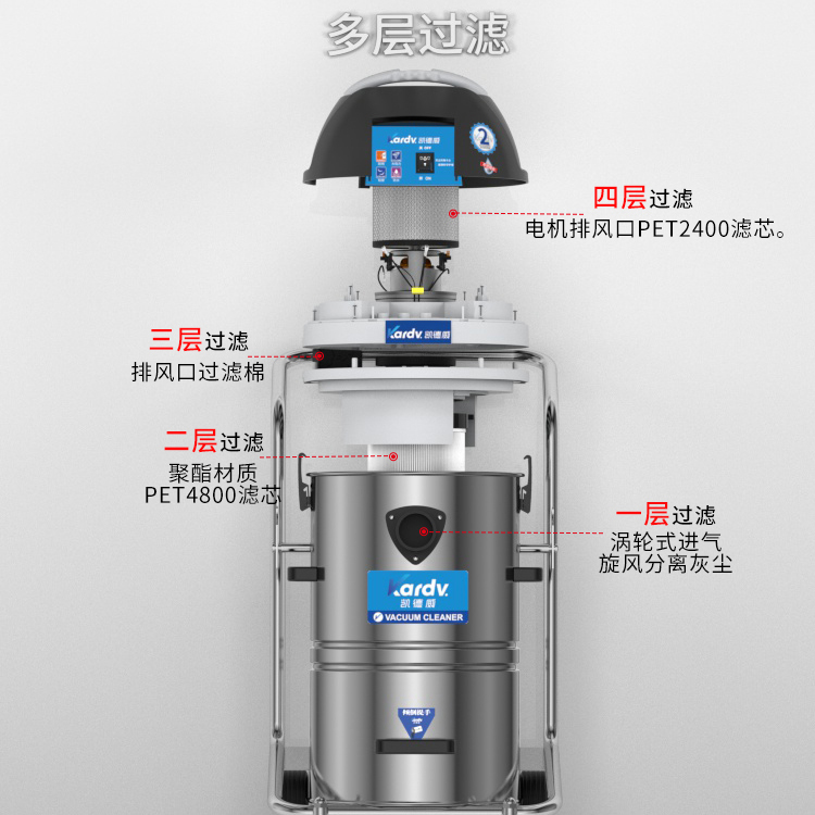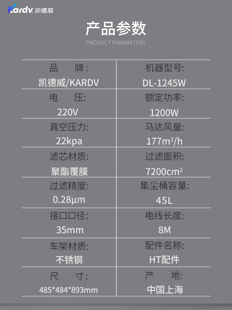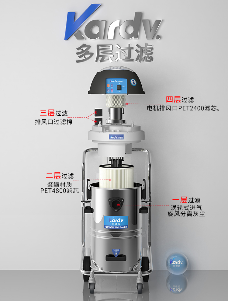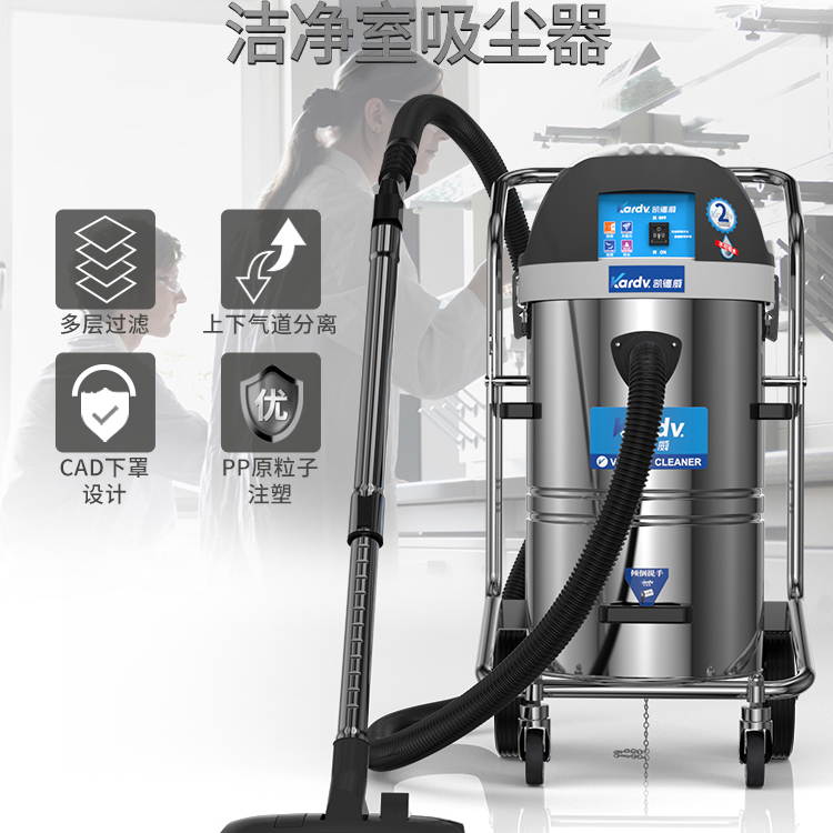 DL-1245W是一款工商業吸塵器,散熱上采用上下氣道分離,延長了排風的路徑及時間,所產生的聲音相對比普通的吸塵器聲音??;有可達45L左右的不銹鋼材質制成的集塵桶,同時它配有前輪為萬向輪并帶剎車的不銹鋼車架使用起來靈活輕便;多層過濾裝置,使排出來的空氣相對潔凈;可參考使用在實驗室,無塵車間,凈化車間等環境中。