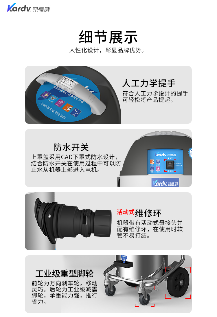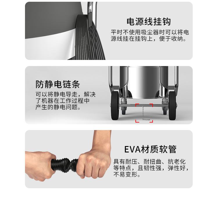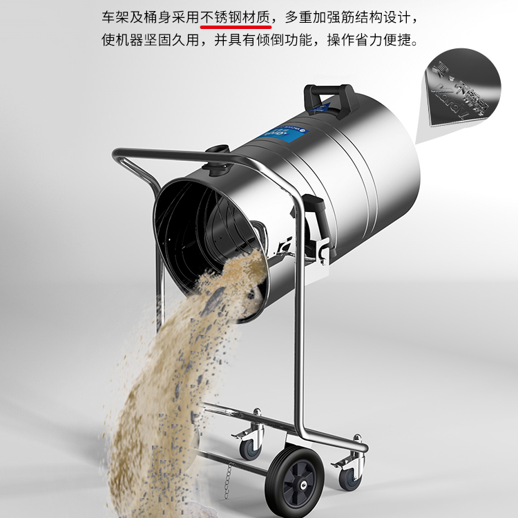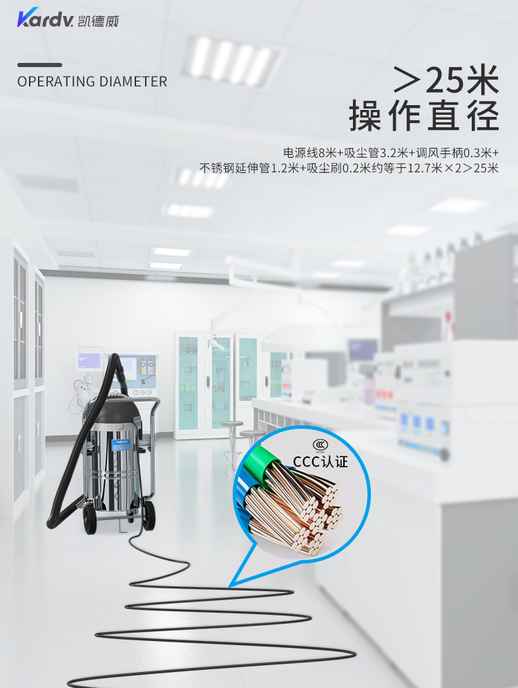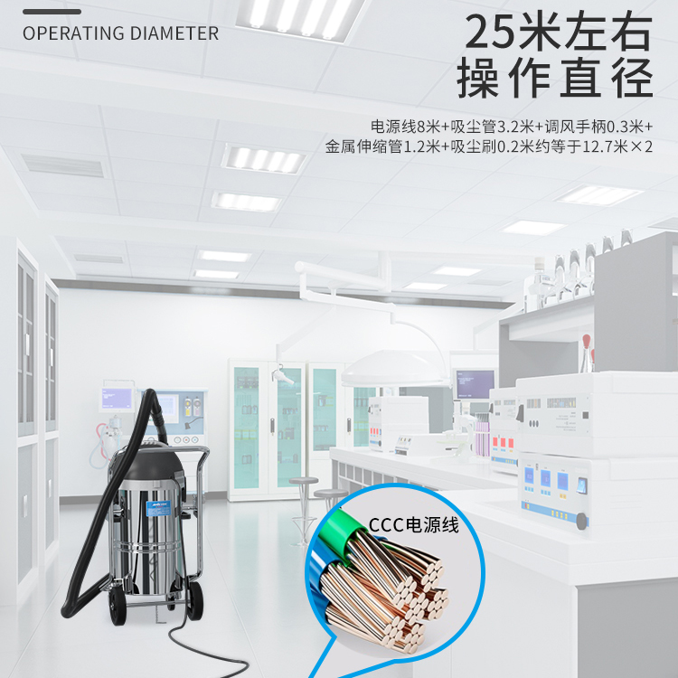 DL-1245W是一款工商業吸塵器,散熱上采用上下氣道分離,延長了排風的路徑及時間,所產生的聲音相對比普通的吸塵器聲音??;有可達45L左右的不銹鋼材質制成的集塵桶,同時它配有前輪為萬向輪并帶剎車的不銹鋼車架使用起來靈活輕便;多層過濾裝置,使排出來的空氣相對潔凈;可參考使用在實驗室,無塵車間,凈化車間等環境中。