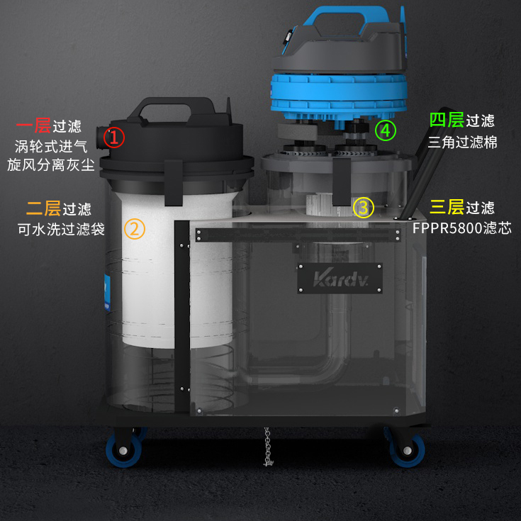DL-3078X由我司設計,區別常規吸塵器的進氣方式,采用下進氣原理,在吸細小粉塵、紡織廠棉絮、棉絲等容易堵塞過濾器的垃圾時,使大部分垃圾直接進入布袋過濾,少量物質再經過濾器二次過濾,這樣解決了過濾器易堵塞的問題。